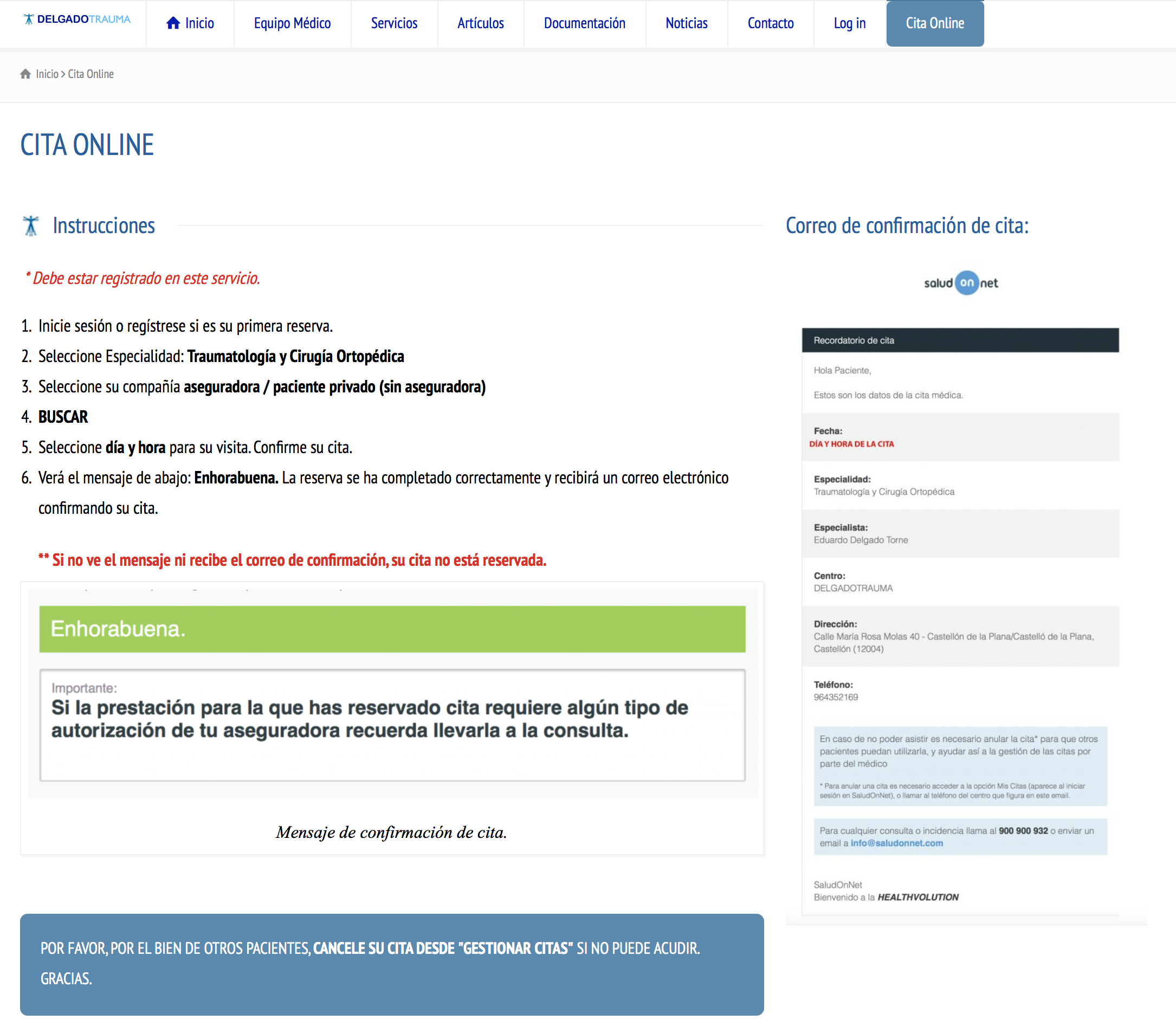 Esperamos que esta información les sea útil para utilizar el sistema de CITA ONLINE en DELGADOTRAUMA.